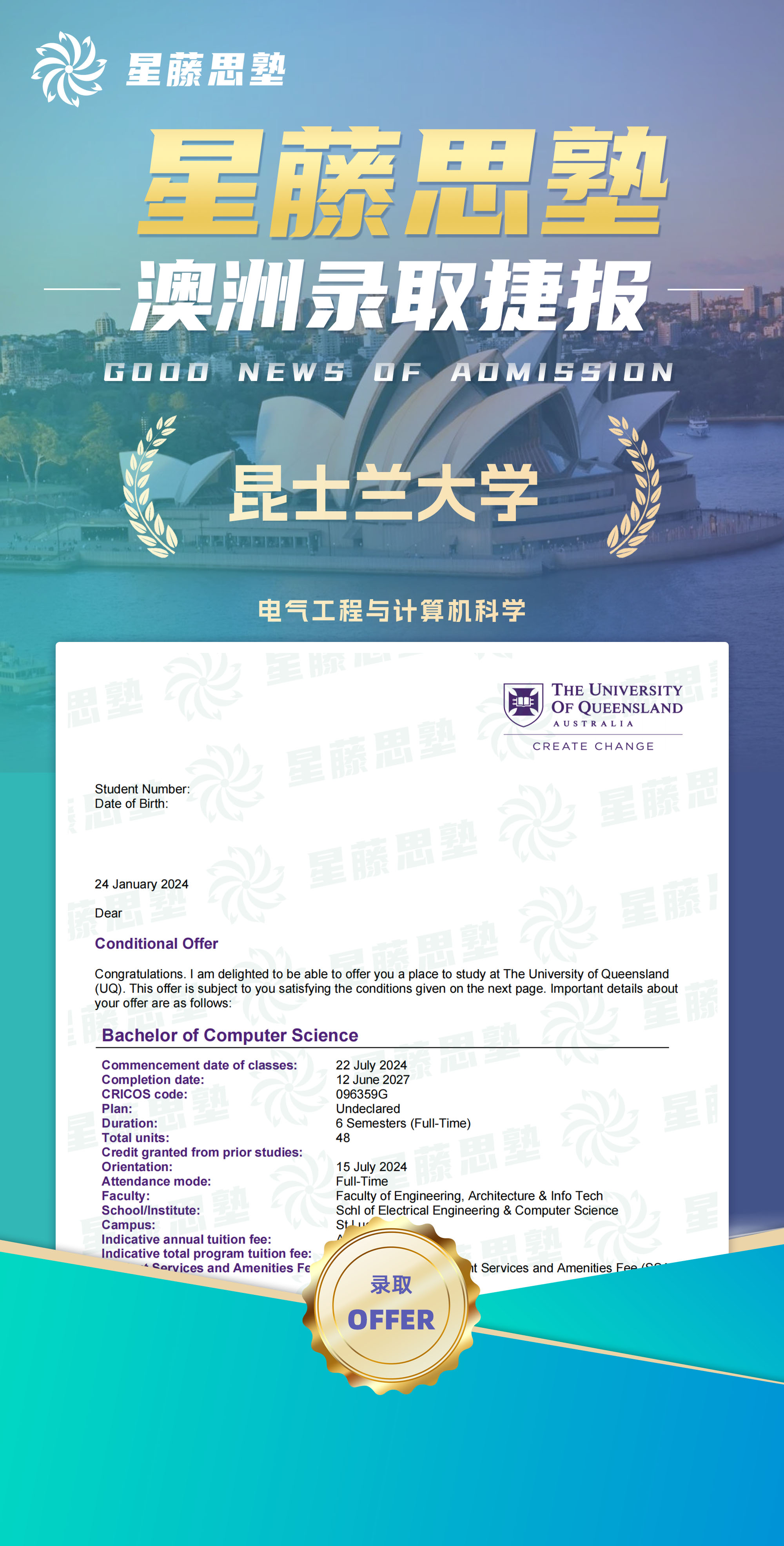 澳本 | 斩获昆士兰大学本科录取Offer