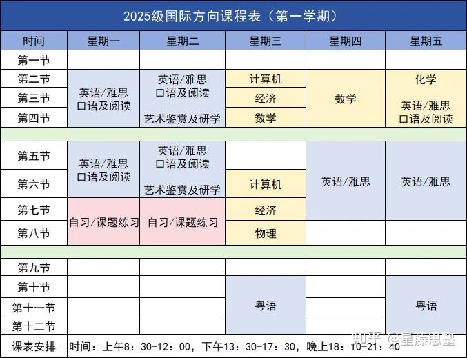 每周课程设置充实且紧凑
