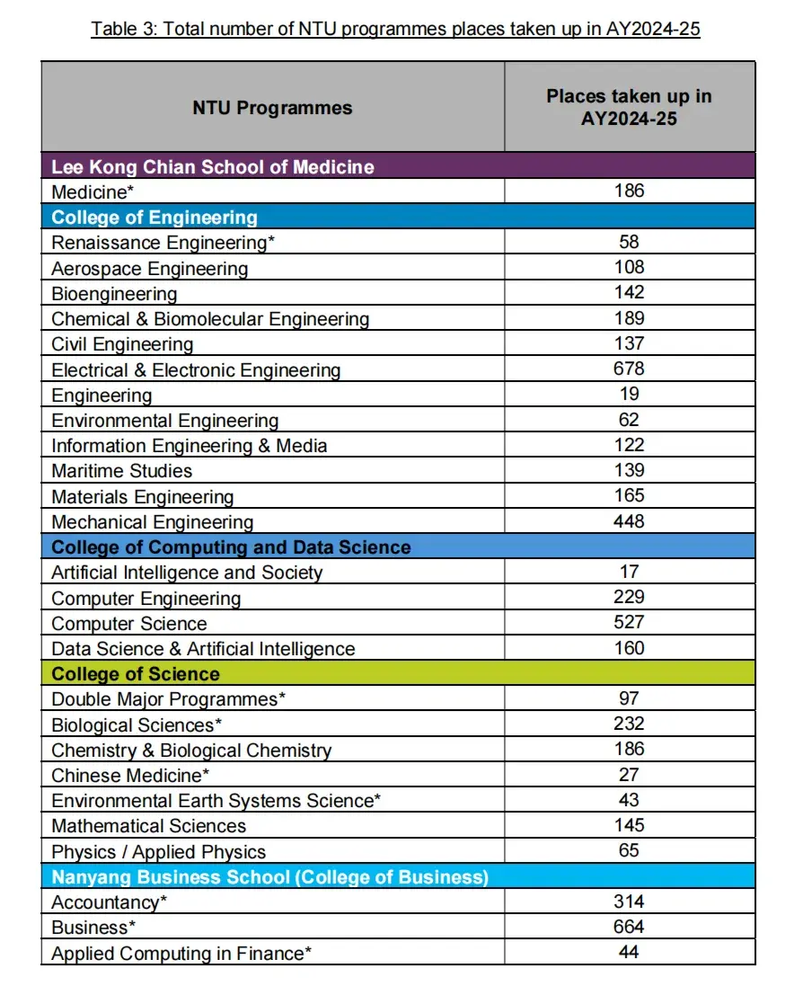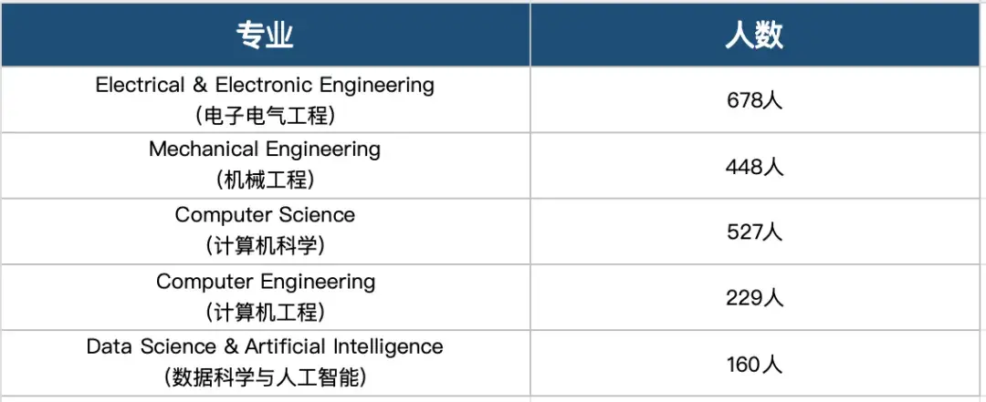 南洋理工大学官方给出了电子电气工程、机械工程、计算机科学、计算机工程和数据科学与人工智能专业的录取数据,仅这五大专业的录取总人数超2,000人。