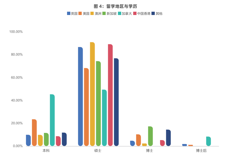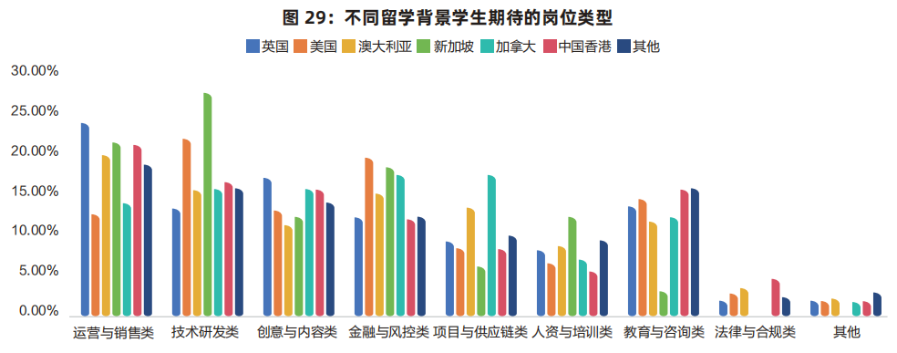 英国、中国香港、澳洲、美国、加拿大等其他地区的留学生,则更青睐外资企业、上市公司和央国企。